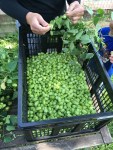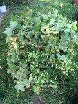 Ich habe die Pflanzen vollständig abgeerntet und an der Rebe einen Rest der Triebe von ca. 40-50cm stehen lassen. Das ging recht zügig. Das Zupfen der Dolden hat dann schon wesentlich länger gedauert und die ganze Familie wurde zur Ente eingespannt. Die beiden Reben brachten am Ende knapp unter 2kg (1930 Gramm) auf die Waage. Diese Ernte habe ich in zwei Portionen zu je gut 1 Kilo geteilt.