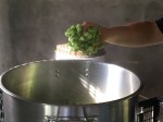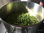 Nach der Ernte der Dolden ging es wieder in die Braustube. Erst wurde geläutert und dann gekocht. Nach Kochbeginn habe ich den Sud neutral mit 25 Gramm Herkules gebittert. Der frische Hopfen war ausschliesslich für das Aroma zuständig. Ich habe 60 Minuten gekocht und zum Kochende kam nach „Flame out“ das erste Kilo frischer Cascade in den Topf. Das ist schon eine amtliche Menge und eine ganz schönes Suppe. Ich habe die Dolden für 20 Minuten im Sud gelassen und sie dann abgeschöpft.