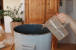 Zuerst füllst du 20 Liter Leitungswasser in den Einkocher und schaltest ihn auf die höchste Stufe. Bring das Wasser auf 70 °C. Schalte nun den Einkocher aus und schütte das geschrotete Malz in das heisse Wasser. Im Anschluss mit dem Kochlöffel gut durchrühren, so dass keine Klumpen entstehen.