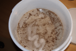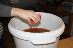 Öffne nun vorsichtig den Deckel deines Gäreimers und prüfe mit einem gereinigten und sauberen Thermometer die Temperatur der Würze. Die Temperatur sollte unterhalb von 25 °C liegen. Ansonsten muss die Würze noch weiter abkühlen. Erst wenn die Temperatur unter 25 Grad – idealweiser bei 18 bis 21 °C – liegt öffnest du vorsichtig und mit absolut sauberen Händen das Päckchen Hefe. Streue die Hefe vorsichtig und gleichmässig auf die Würze. Verteile die Hefe dabei über die Oberfläche, so dass keine Klümpchen entstehen können.